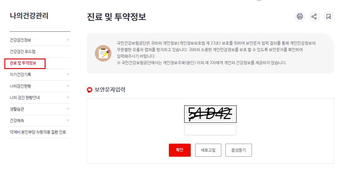 내가 받은 처방전을 조회 하는 방법은 국민건강보험공단 홈페이지(nhis.or.kr)에서 검색할수 있습니다.
