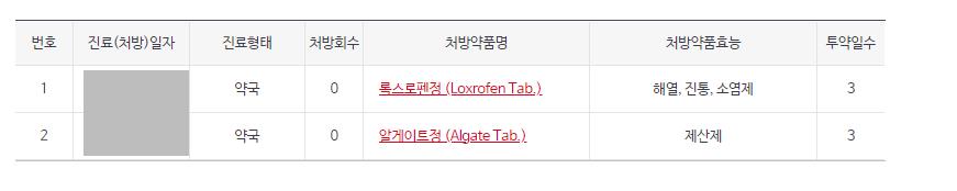 본인인증과 보안문자를 입력하면 내가 받은 처방전과 처방약 내역이 위 처럼 뜹니다.