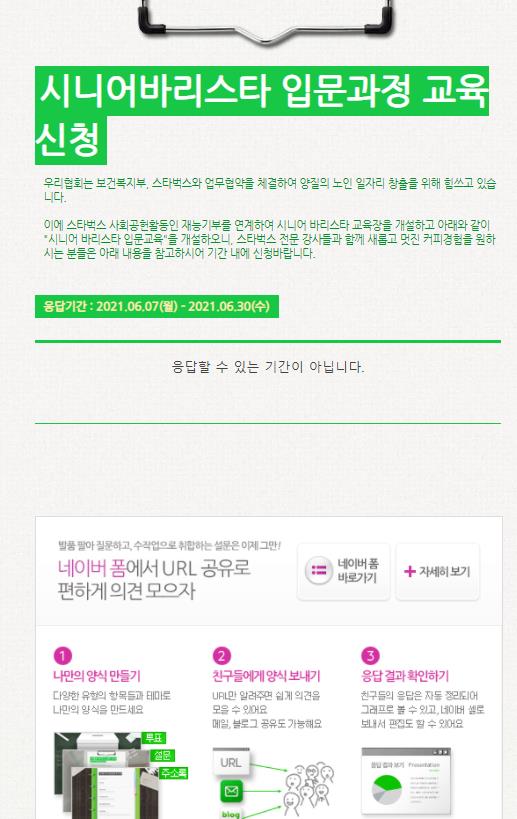 최근에는 스타벅스와 제휴를 맺어 바리스타 교육과정 신청을 받고 교육을 하기도 했습니다.