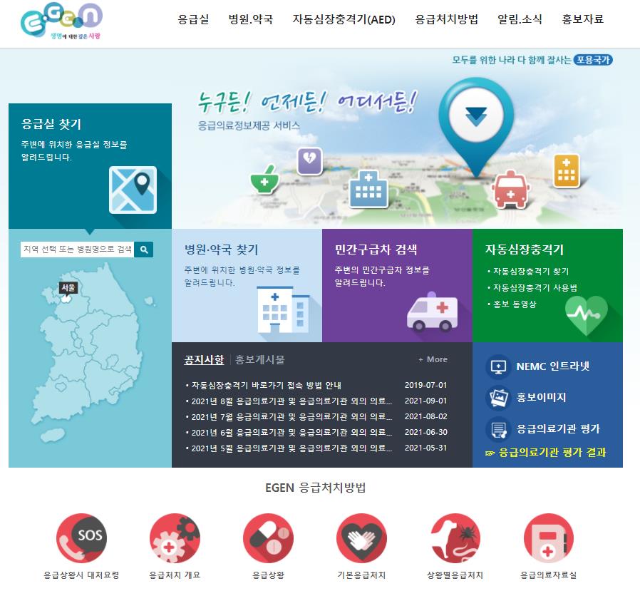 또는 응급의료포털( e-gen.or.kr)에서나 보건복지부(mohw.go.kr)에서 확인할수 있으며 스마트폰으로 '응급의료정보제공 어플'을 다운받아서 바로 찾아볼수 도 있습니다.