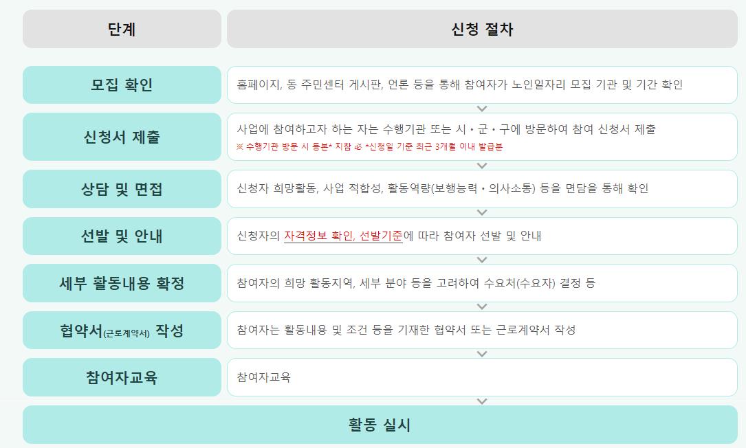 노인일자리 신청은 노인일자리 여기 홈페이지나 동주민센터 게시판 등에서 확인후 사업을 시행하는 기관이나 시군구에 방문해 신청서를 제출합니다.