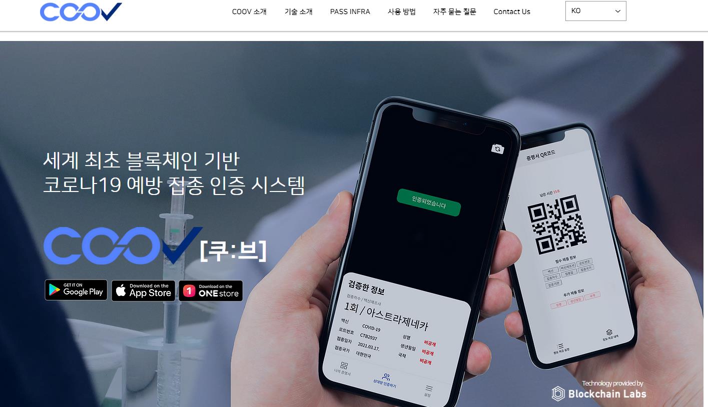 코로나19 예방 백신 접종후 종이로 받던 예방접종증명서를 개개인별 스마트폰애 coov라는 어플이나 앱으로 다운받아 필요할 경우 전자 어플 수단으로 검증할수 있게하고 있는 예방접종 증명 어플이기도 합니다.
