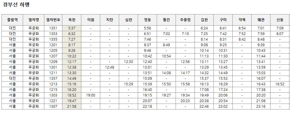 옥천역 열차시간표_경부선 하행 시간표