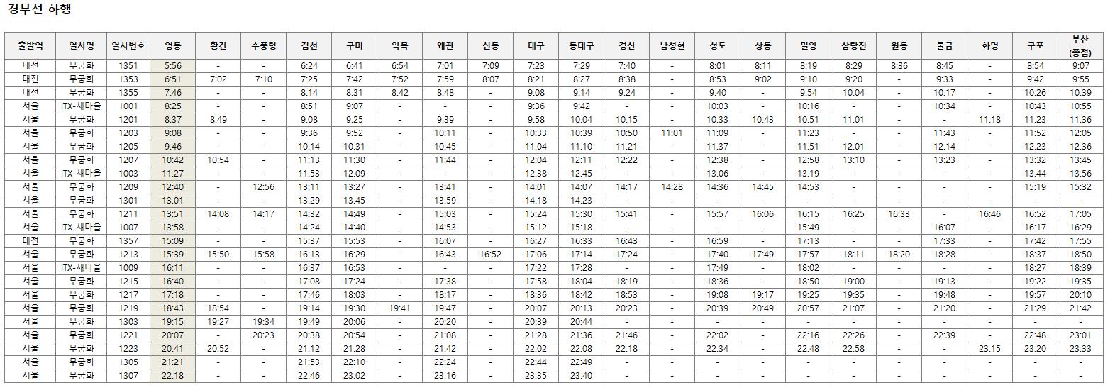 더 자세한 무궁화호와 ktx열차 시간표는 아래 엑셀 파일을 다운받으시면 볼수 있습니다.