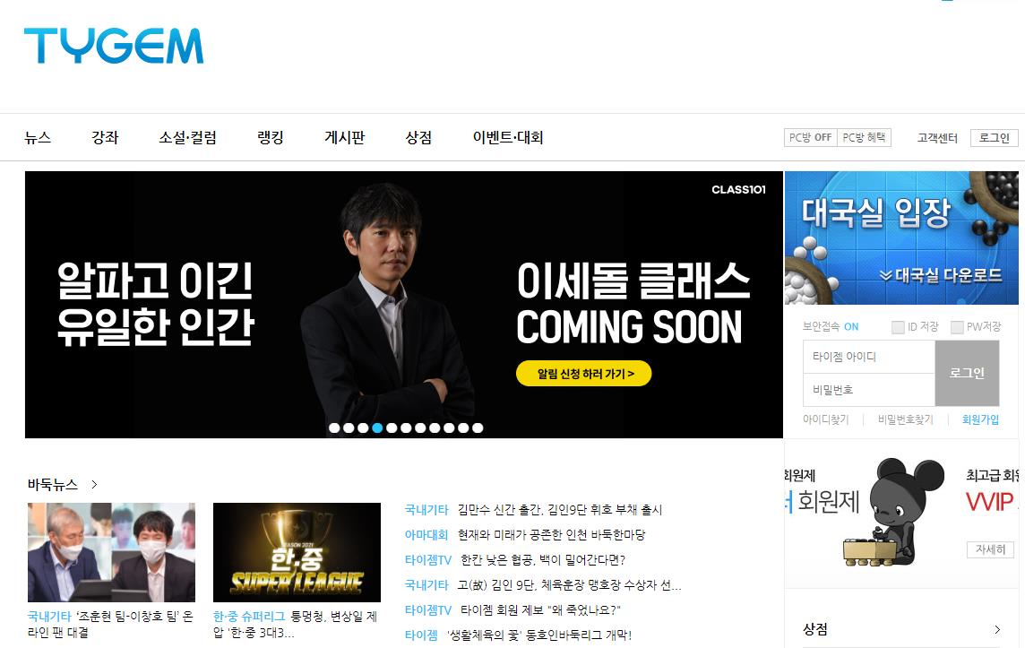 타이젬 바둑 설치하기를 위해서는 우선 타이젬바둑 홈페이지(tygem.com)에 접속해야 프로그램을 설치할수 있습니다.