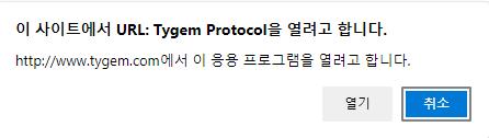URL:TYGEM PROTOCOL을 열려고 합니다라는 팝업창이 뜨면 열기를 통해 실행을 진행합니다.
