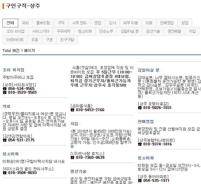 구인구직에서는 상주시와 문경시 별도로 운영하고 있는데요.
