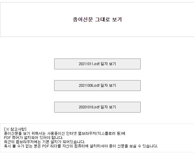 종이신문은 pdf뷰어가 설치되어 있어야 종이신문을 볼수 있습니다.