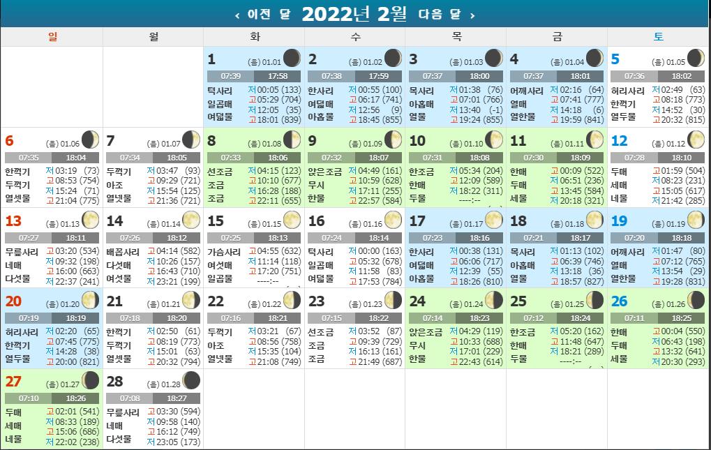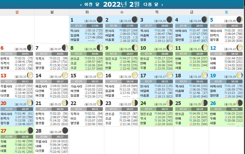 이상으로 2022년 1월,2월 강화도 물때 시간표에 대해 알아보았습니다.