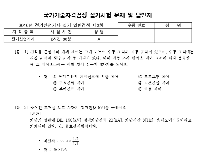 전기산업기사 실기 기출문제 2010년 07월 - 실기 기출문제 모음 - 최강 자격증 기출문제 전자문제