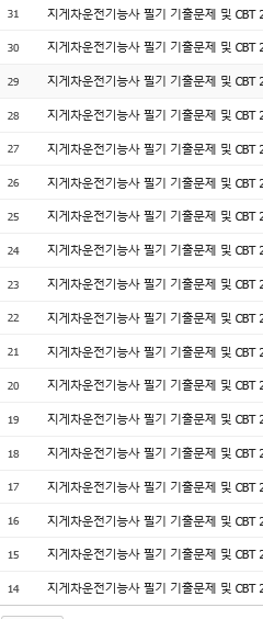 홈페이지에 접속하면 지게차 운전기능사 기출문제를 년도별로 받아서 풀어 볼수 있습니다. 조금 오래된 문제들이 많지만 문제 감각을 익히기에는 좋은거 같네요.