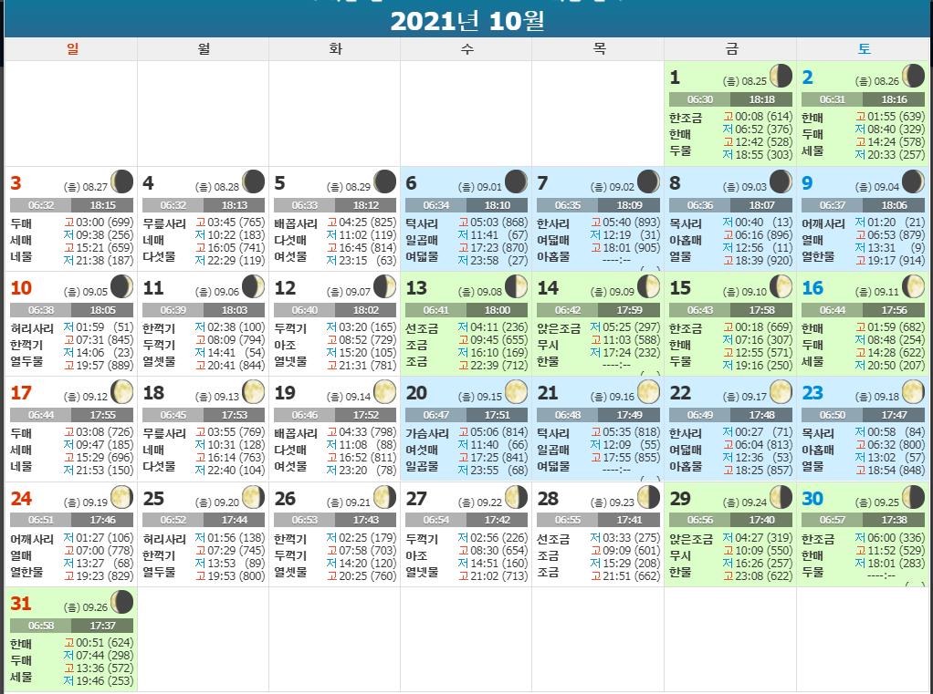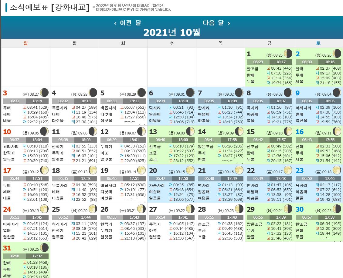 이상으로 강화도 9월,10월 물때표에 대해 알아보았습니다.