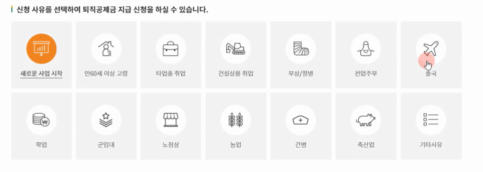 퇴직공제 신청사유에 해당되는 사항을 선택합니다.