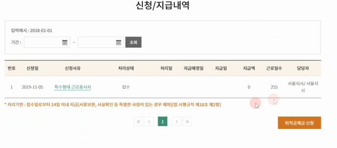 신청/지급내역으로 넘어가며 처리상태외 지급예정일,지급일등이 나옵니다.