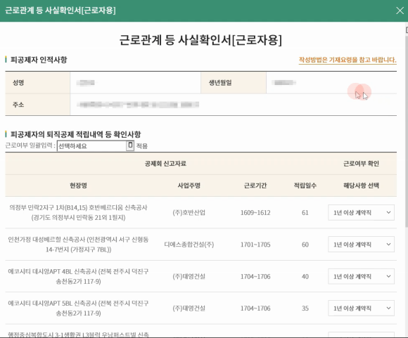 만약 근로내역 사실확인이 필요한 대상자이면 마지막에 근로내역 사실확인서를 제출 해야합니다.