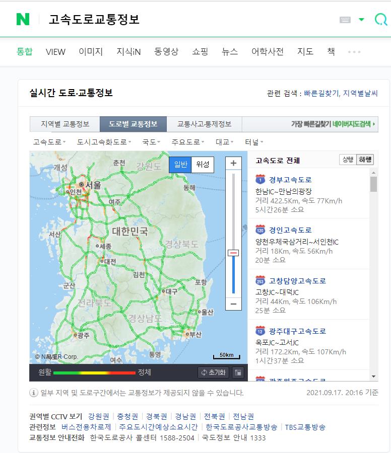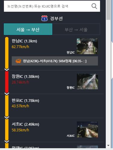 실시간 cctv도 바로 볼수 있어서 정체가 심하면 다른길로 가거나 조금 늦게 출발할수도 있겠네요.